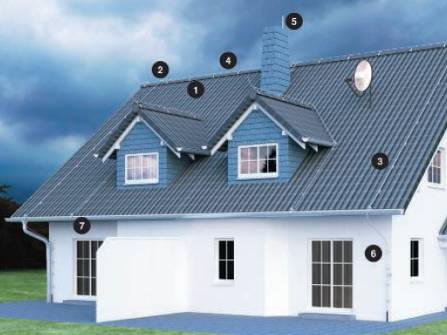 Пример, монтаж на коньковой кровле. Компоненты системы молниезащиты на примере коттеджа.